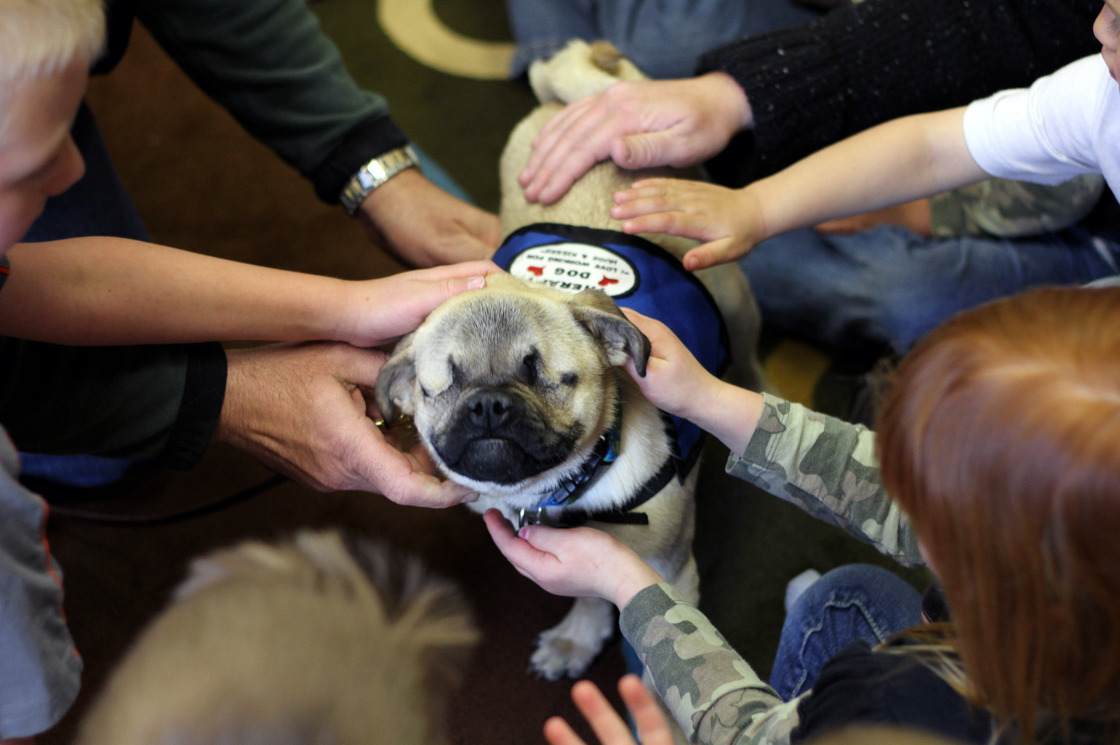 that’s Xander the blind therapy dog